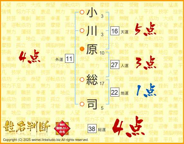 小(3画)川(3画)原(10画) 総(17画)司(5画)