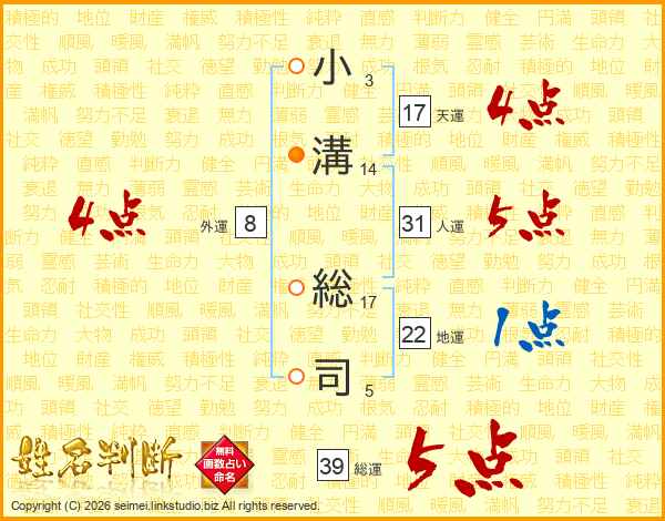 小溝総司さんの天運は17画の4点!