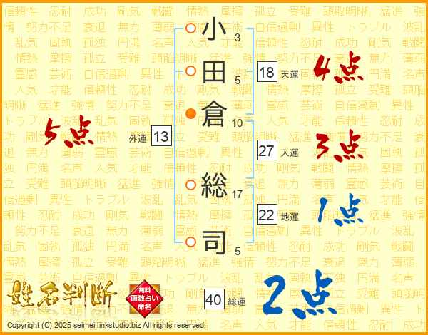小田倉総司さんの総運は40画の2点!