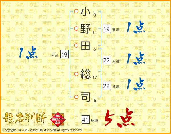 小野田総司さんの総運は41画の5点!