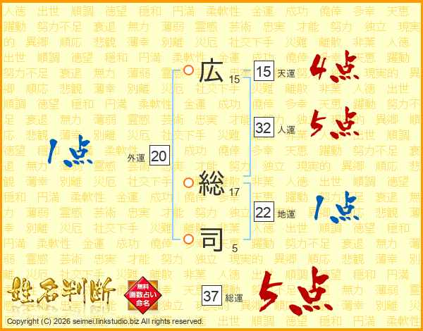 広総司さんの総運は37画の5点!