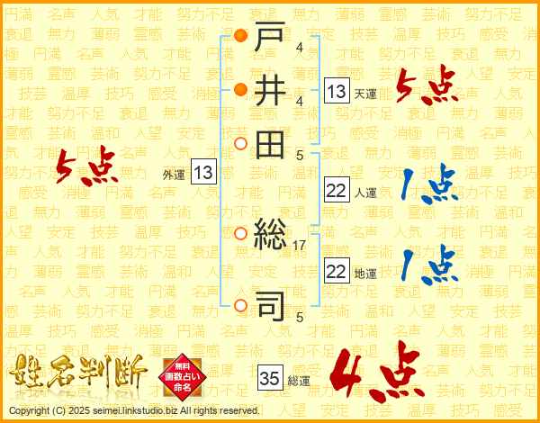 戸(4画)井(4画)田(5画) 総(17画)司(5画)