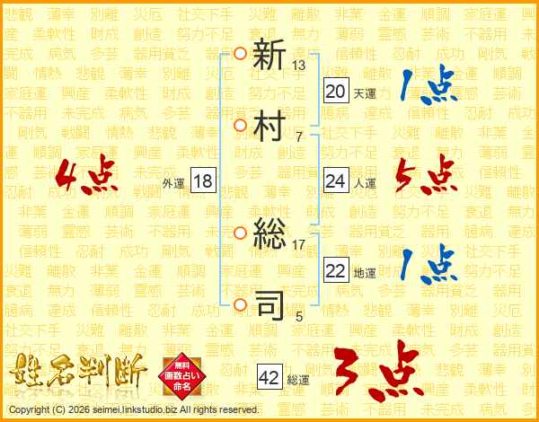 新村総司さんの人運は24画の5点!