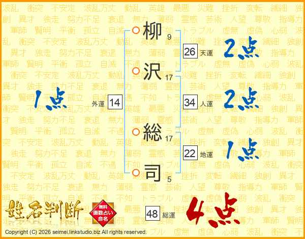 柳沢総司さんの総運は48画の4点!