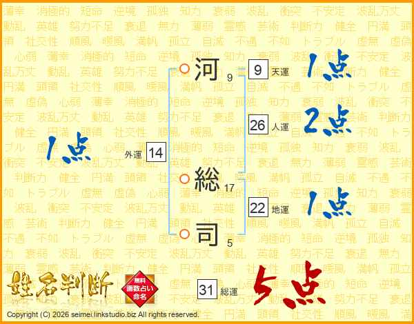 河総司さんの総運は31画の5点!