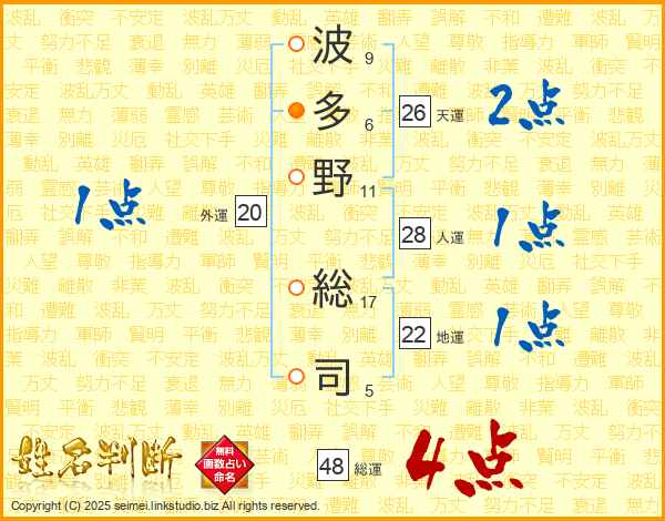 波多野総司さんの天運は26画の2点!
