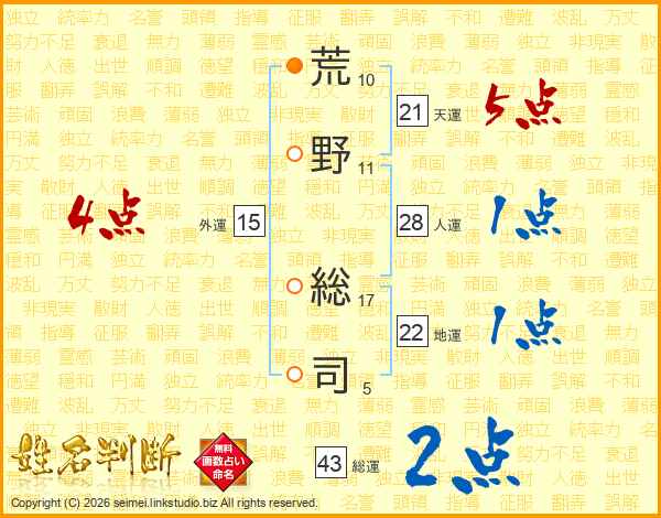 荒野総司さんの天運は21画の5点!