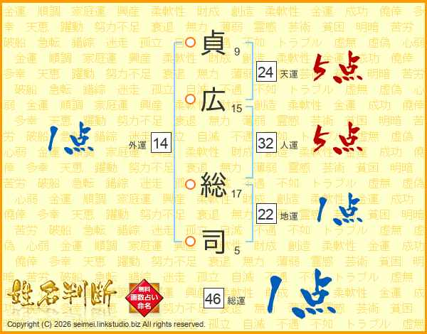 貞広総司さんの総運は46画の1点!