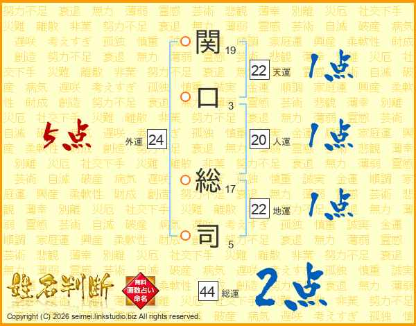 関口総司さんの天運は22画の1点!