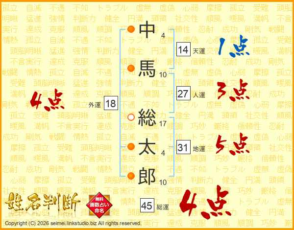 中馬総太郎さんの総運は45画の4点!
