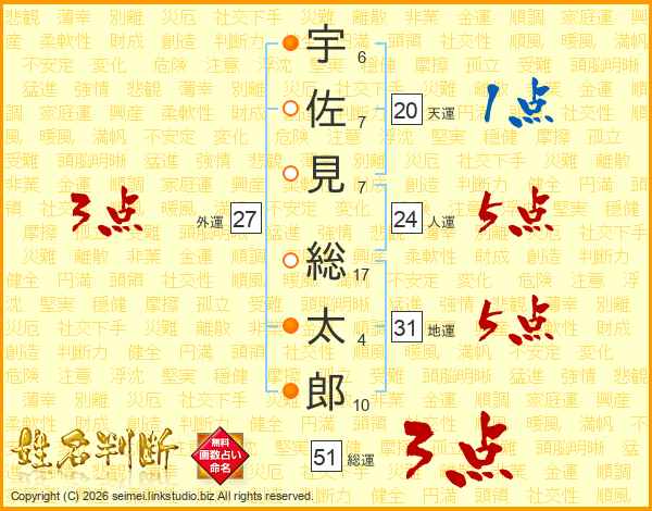 宇佐見総太郎さんの総運は51画の3点!