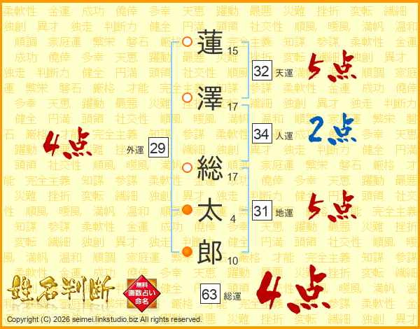 蓮澤総太郎さんの総運は63画の4点!