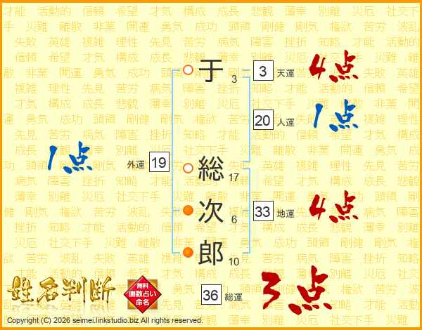 于総次郎さんの総運は36画の3点!