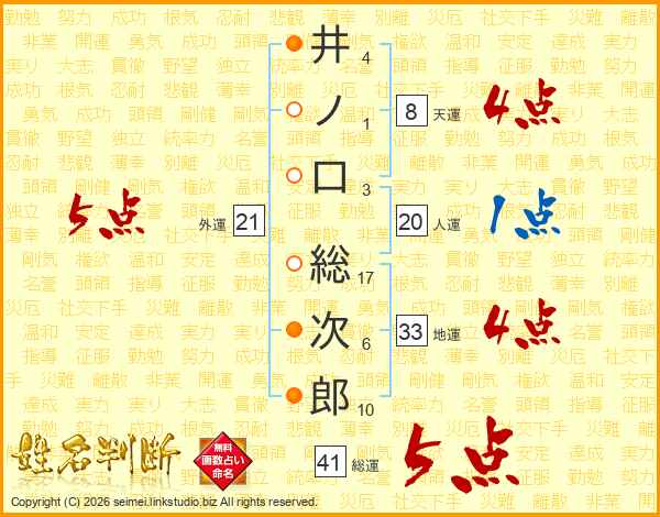 井ノ口総次郎さんの総運は41画の5点!