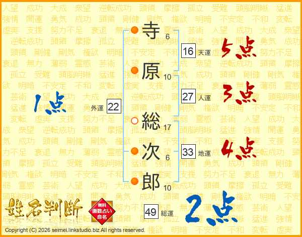 寺原総次郎さんの人運は27画の3点!