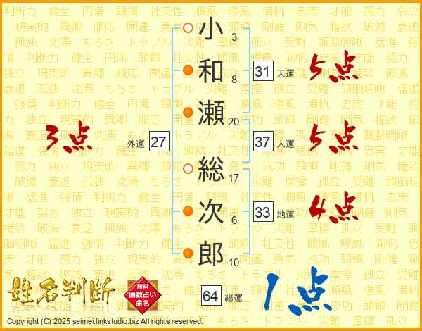 小(3画)和(8画)瀬(20画) 総(17画)次(6画)郎(10画)
