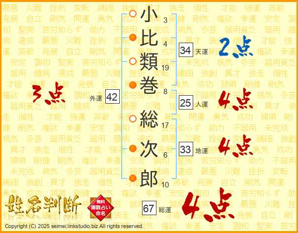 小(3画)比(4画)類(19画)巻(8画) 総(17画)次(6画)郎(10画)