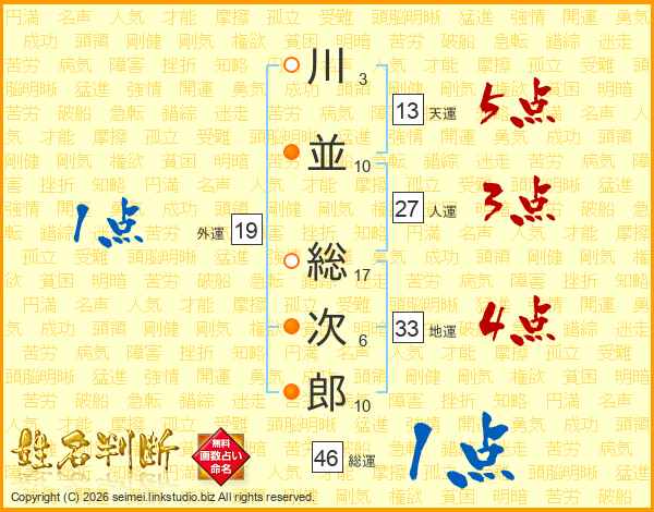 川並総次郎さんの総運は46画の1点!