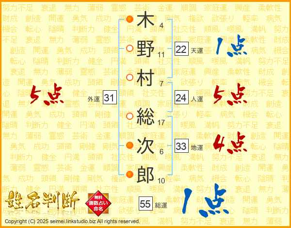 木野村総次郎さんの外運は31画の5点!