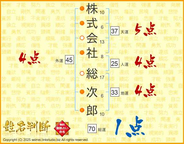 株(10画)式(6画)会(13画)社(8画) 総(17画)次(6画)郎(10画)