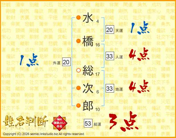 水橋総次郎さんの総運は53画の3点!