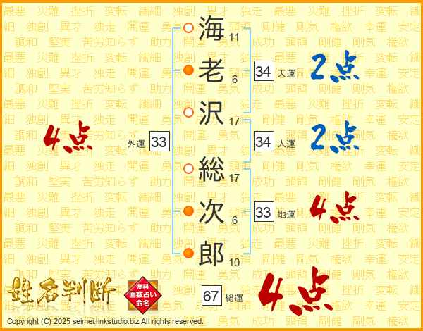 海(11画)老(6画)沢(17画) 総(17画)次(6画)郎(10画)