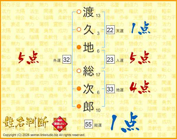 渡(13画)久(3画)地(6画) 総(17画)次(6画)郎(10画)