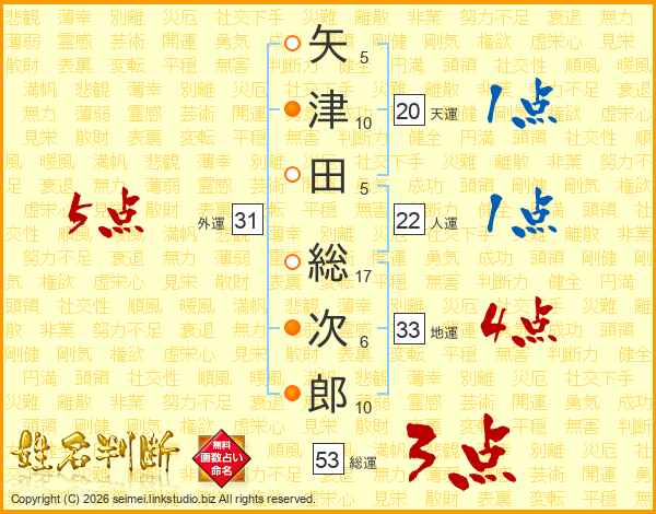 矢津田総次郎さんの総運は53画の3点!