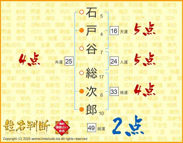 石(5画)戸(4画)谷(7画) 総(17画)次(6画)郎(10画)
