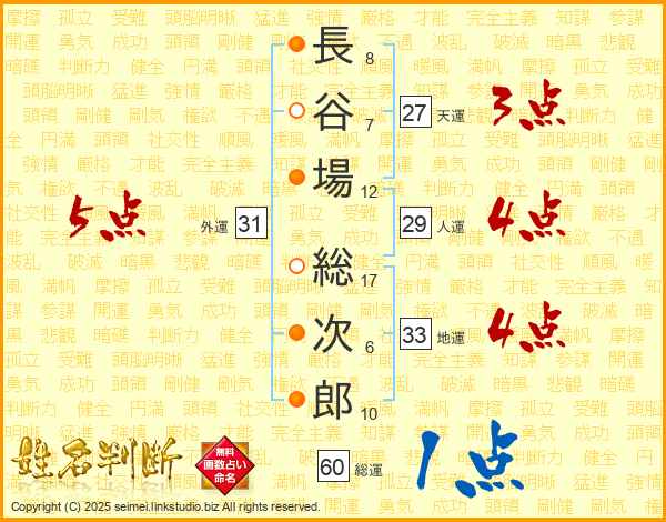 長(8画)谷(7画)場(12画) 総(17画)次(6画)郎(10画)