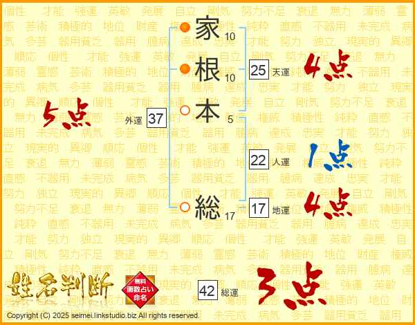 家根本総さんの外運は37画の5点!