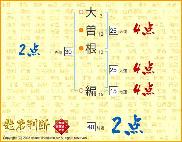 大曽根編さんの天運は25画の4点!