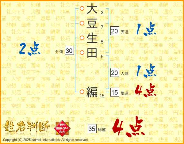 大豆生田編さんの人運は20画の1点!