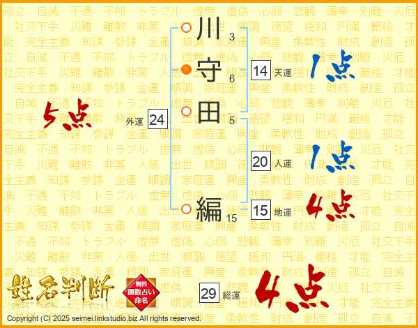 川守田編さんの地運は15画の4点!