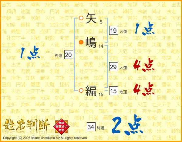 矢嶋編さんの人運は29画の4点!