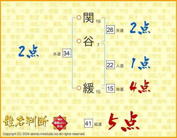 関谷緩さんの総運は41画の5点!