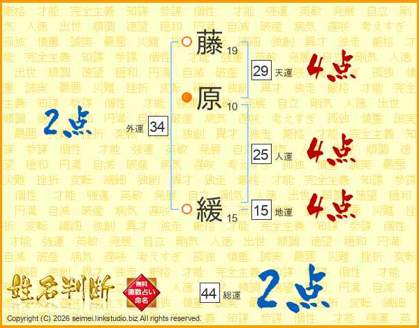 藤原緩さんの総運は44画の2点!