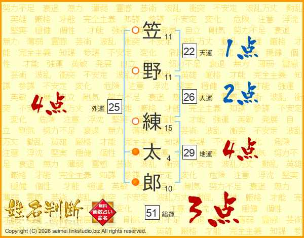 笠野練太郎さんの天運は22画の1点!