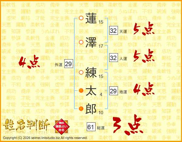 蓮澤練太郎さんの天運は32画の5点!