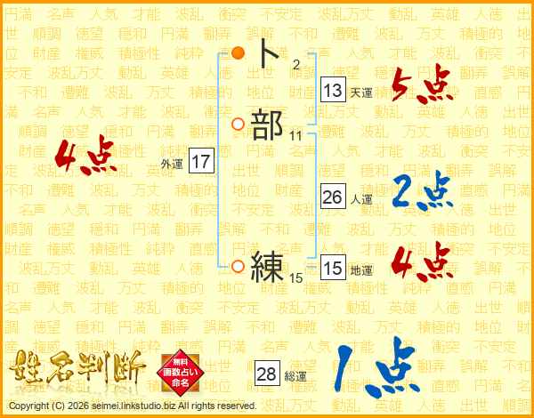 卜部練さんの総運は28画の1点!