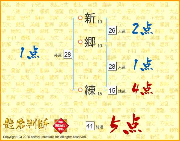 新郷練さんの総運は41画の5点!