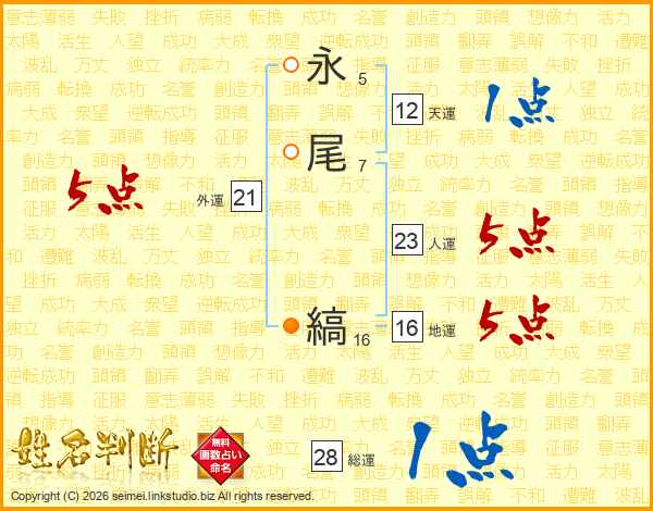 永尾縞さんの外運は21画の5点!