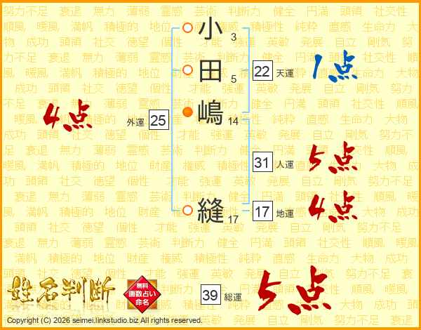 小(3画)田(5画)嶋(14画) 縫(17画)