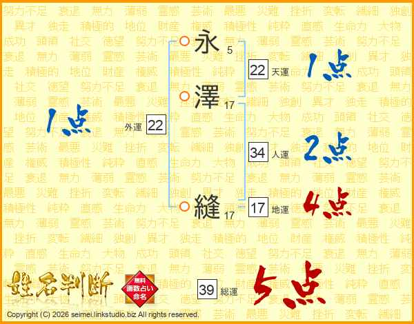 永澤縫さんの総運は39画の5点!