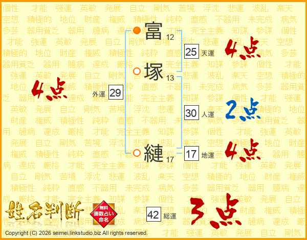 富塚縺さんの地運は17画の4点!