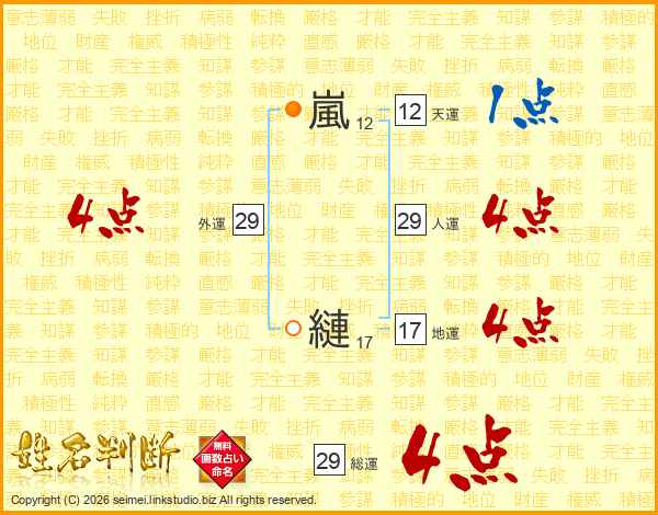 嵐縺さんの総運は29画の4点!