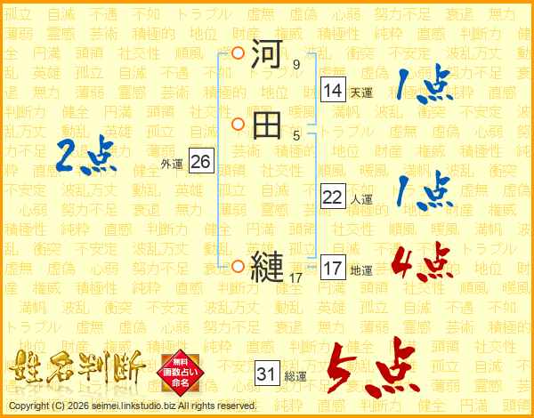 河田縺さんの総運は31画の5点!