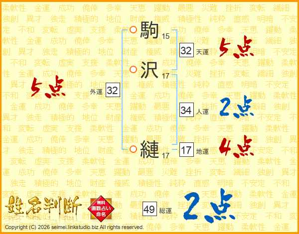 駒沢縺さんの総運は49画の2点!