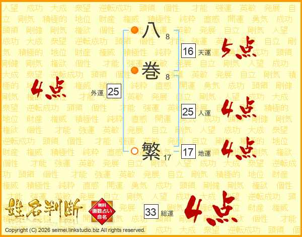 八巻繁さんの総運は33画の4点!