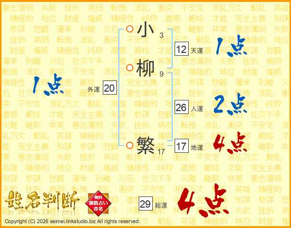 小柳繁さんの人運は26画の2点!